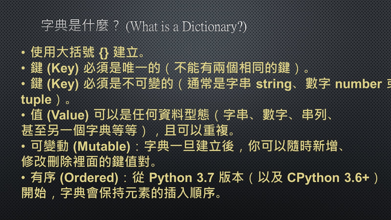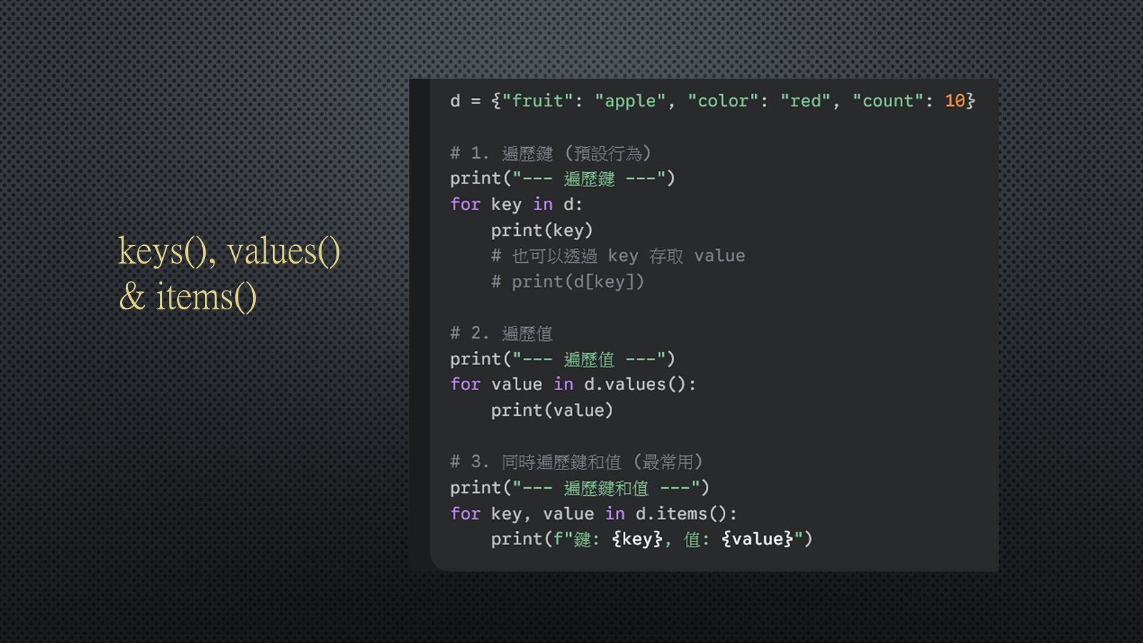 Python dict字典相關語法說明