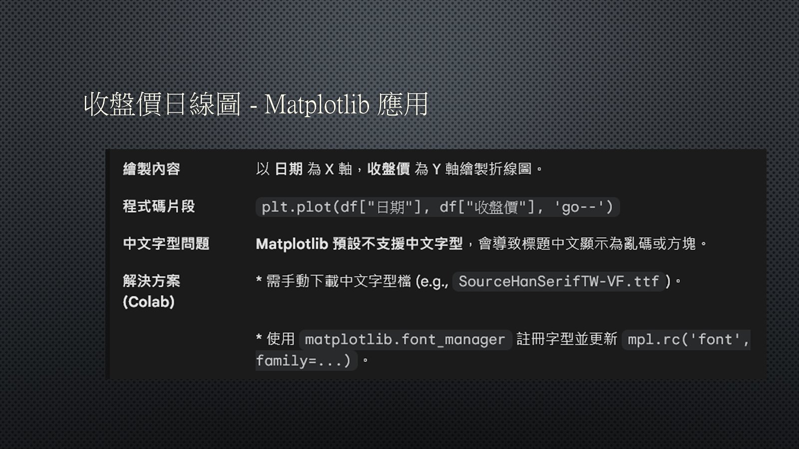 Colab上顯示中文字型股市日線 ipython