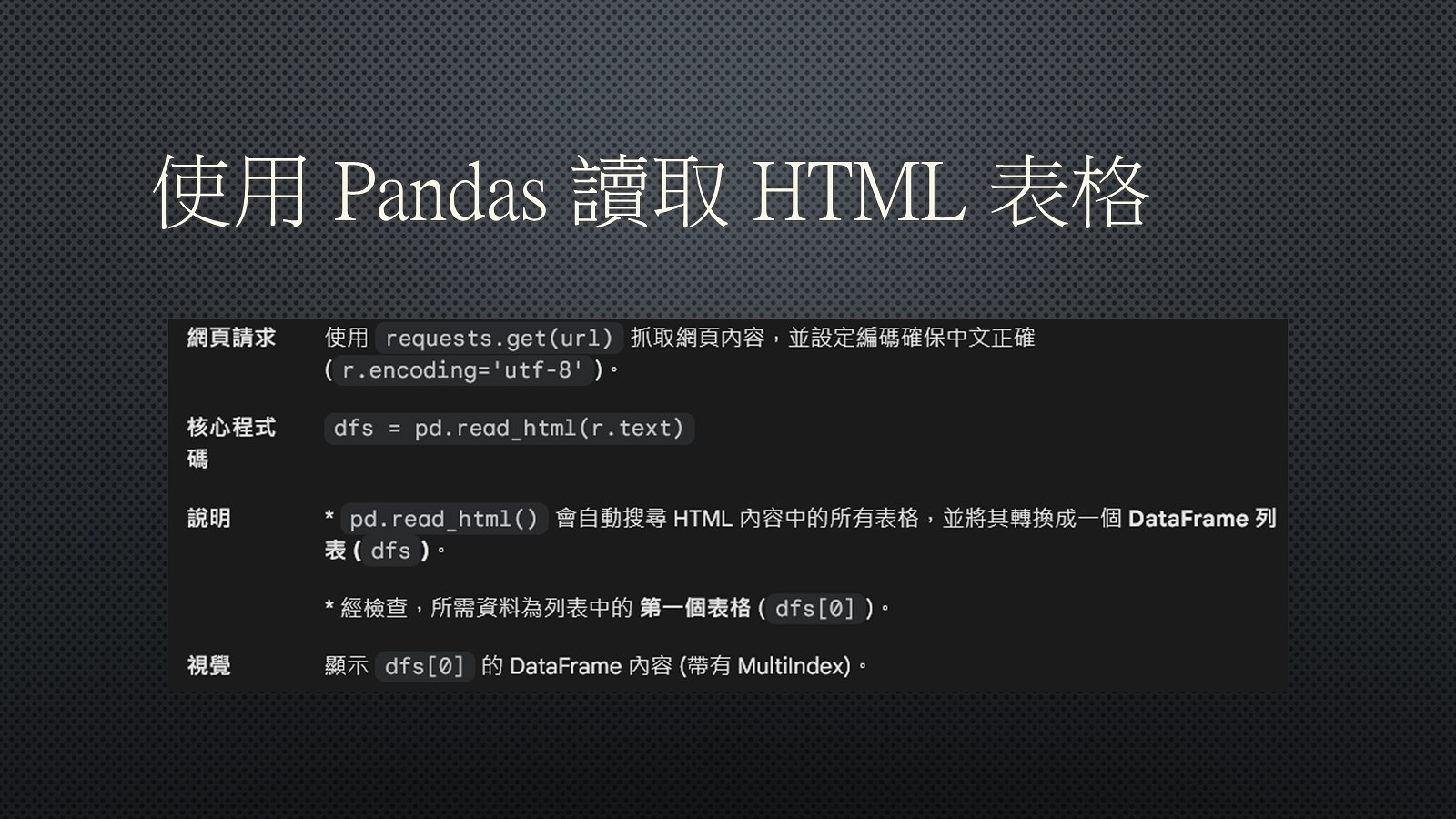requests 爬取 HTML 表格與 pandas 資料處理應用 pptx