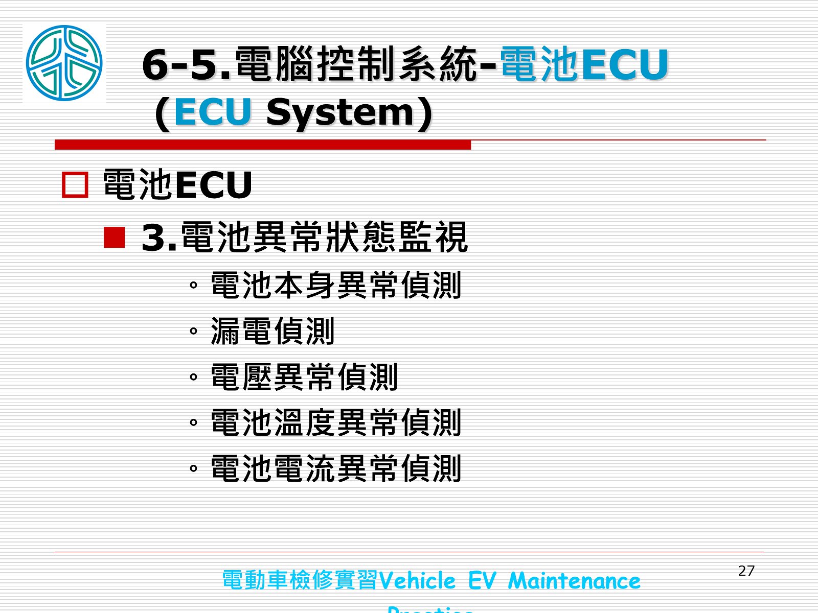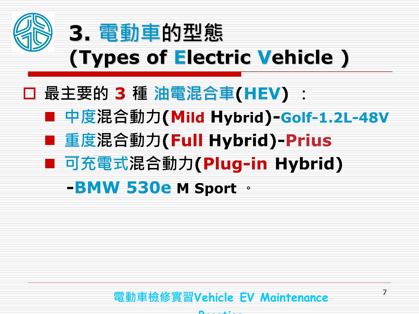 單元7名稱:電動車綜合檢修實習
