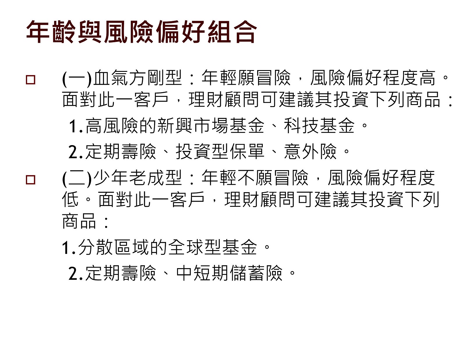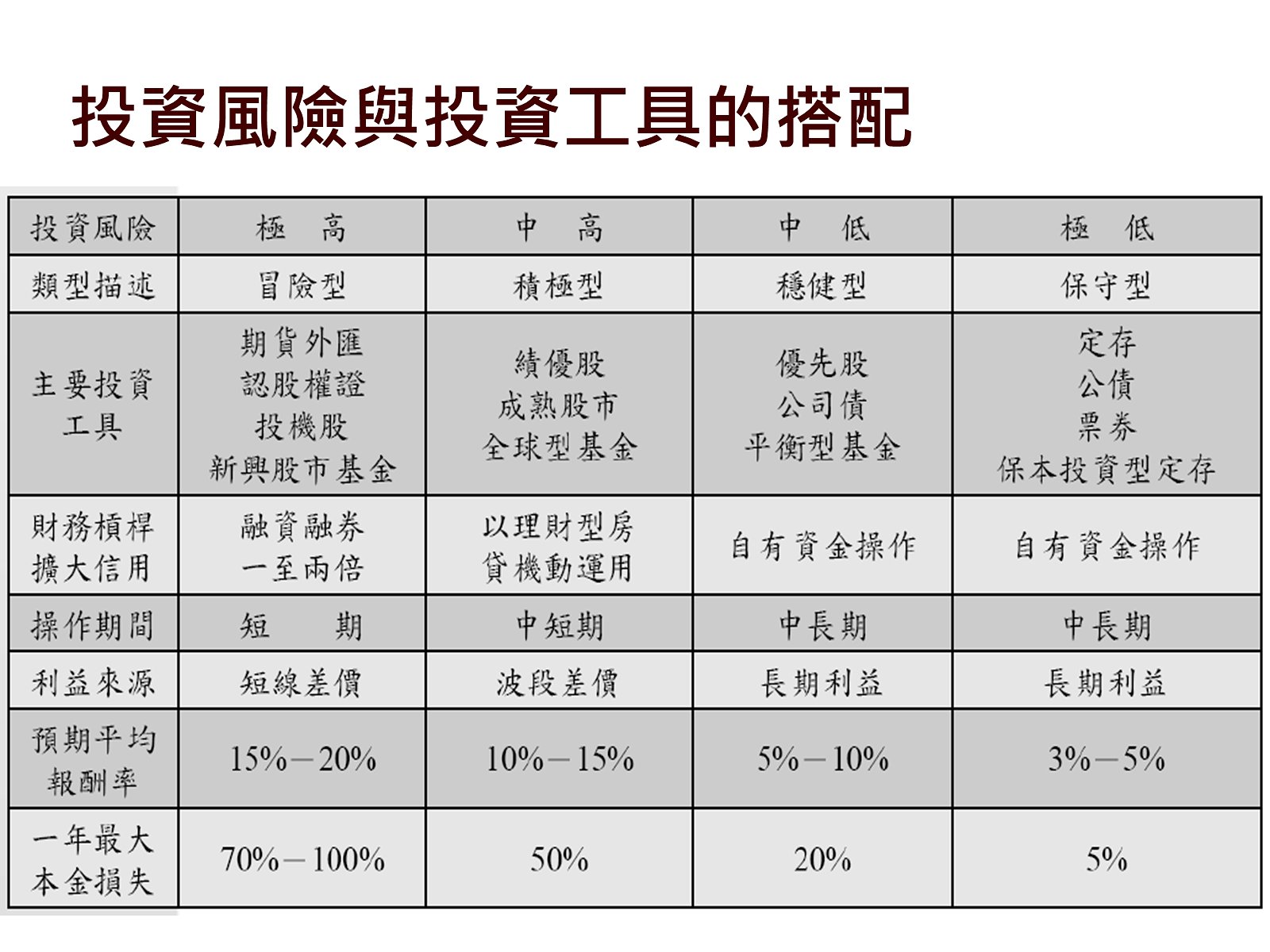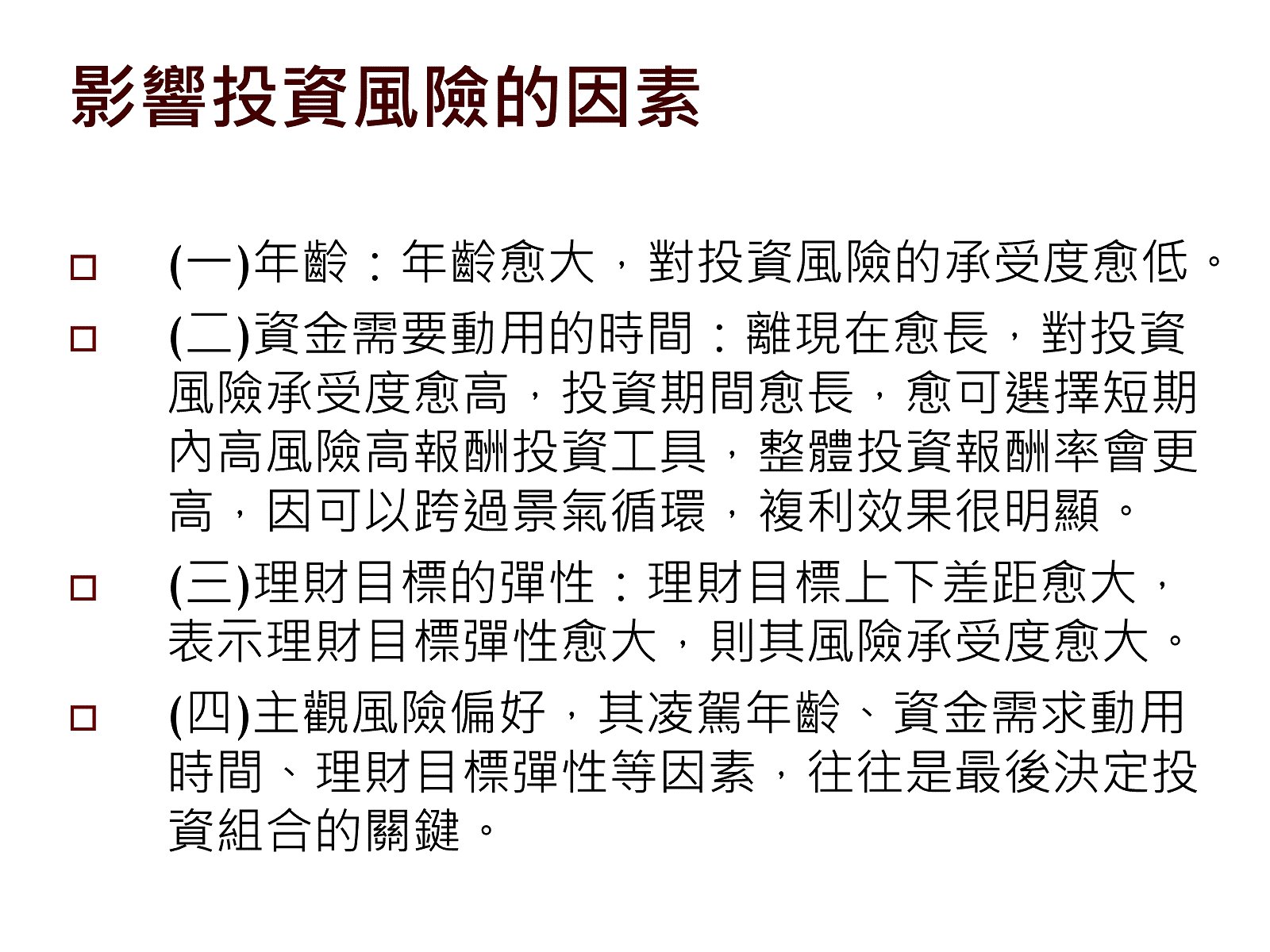 個人投資風險屬性之討論。