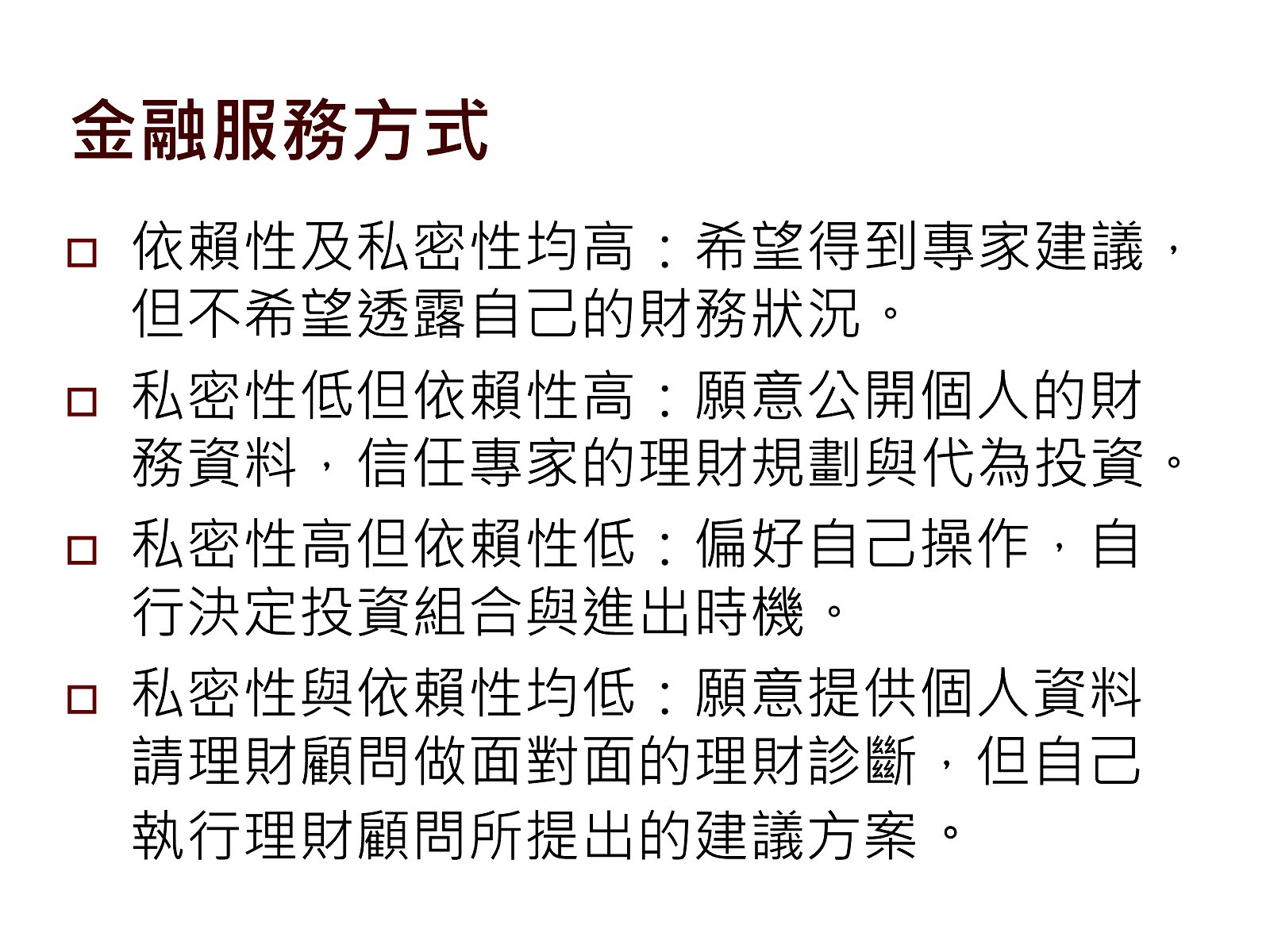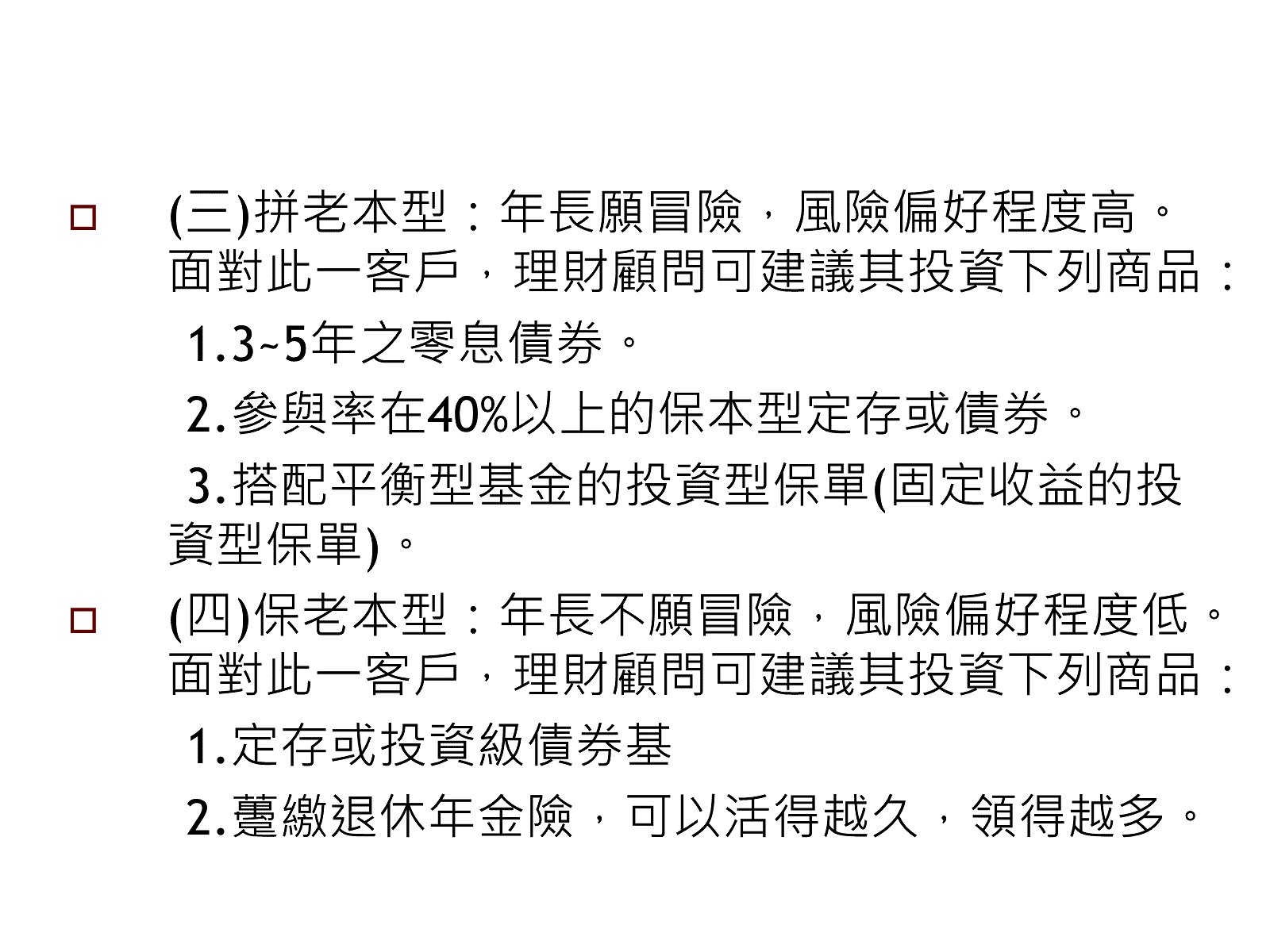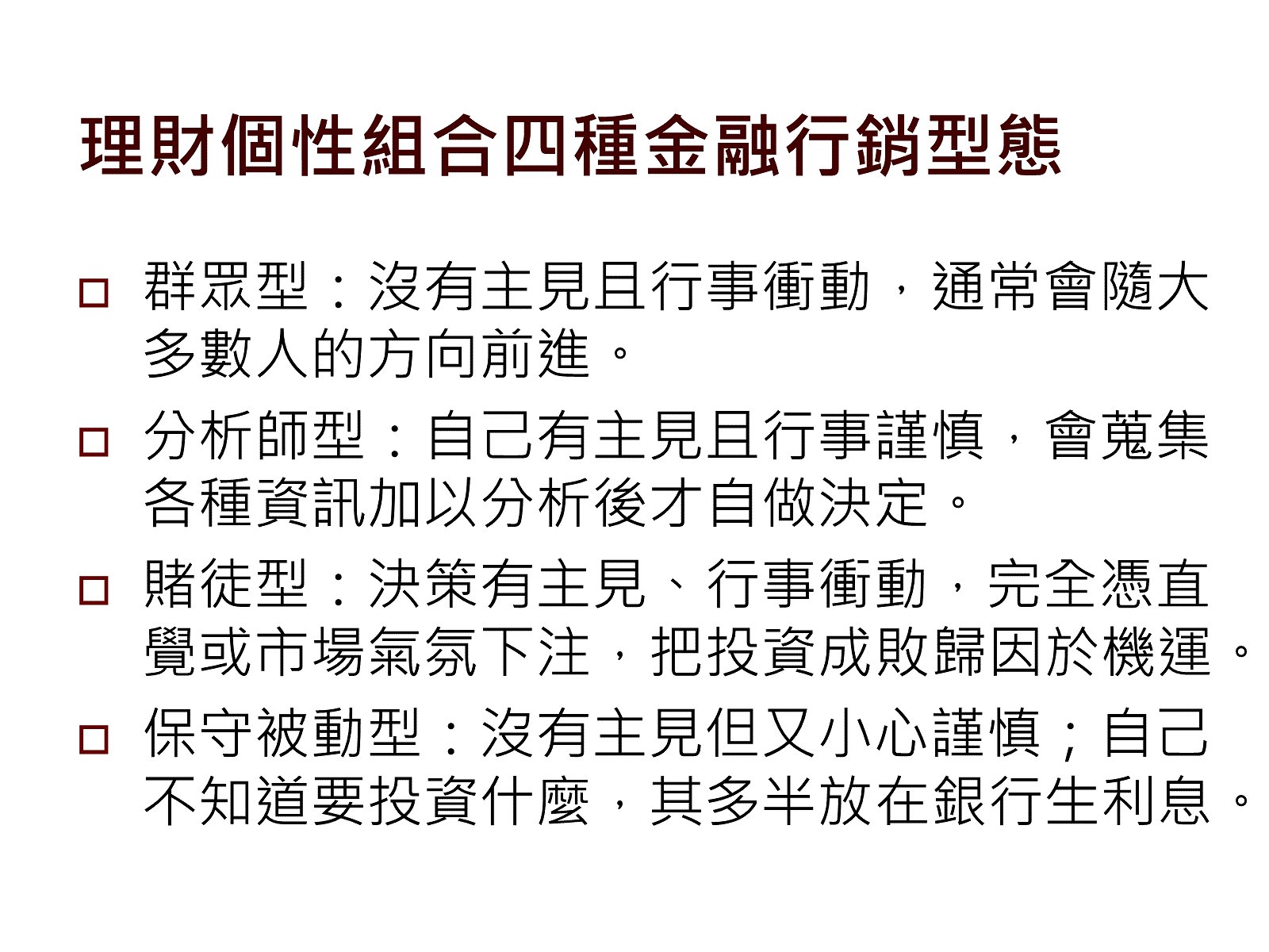 個人投資風險屬性之討論。